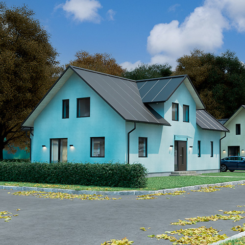 Finja tilbyr flere ulike overflatebehandlinger med mange farger og overflatestrukturer som skaper gjennomfargede, estetisk tiltalende fasader med personlig preg. I dette eksempelet har vi valgt å male huset med silikatfarge.