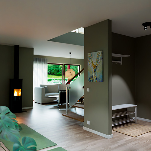 Finja tilbyr flere ulike overflatebehandlinger med mange farger og overflatestrukturer som skaper gjennomfargede, estetisk tiltalende fasader med personlig preg. I dette eksempelet har vi valgt å male huset med silikatfarge.