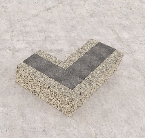 Plasser Exakt-elementene. Start med hjørnene. Sørg for at ytterkantene følger murersnoren. Plasser deretter de øvrige kantelementene.