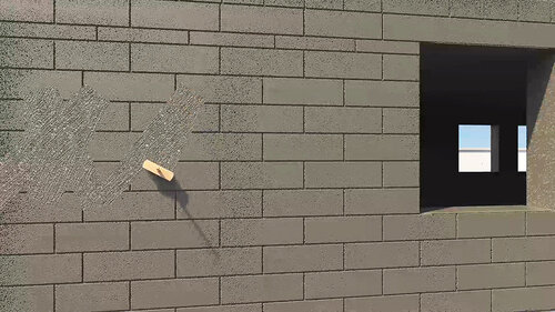 Børst den grunnede flaten med en kalkkost for å sikre at fuger og blokker dekkes. Overflaten skal fortsatt være grov. Gjør det samme på alle vegger og i alle åpninger. La grunningsmørtelen tørke til den er matt før netting.