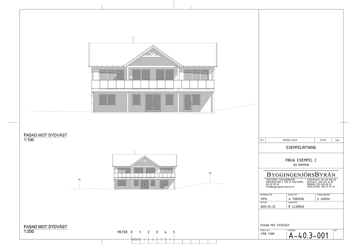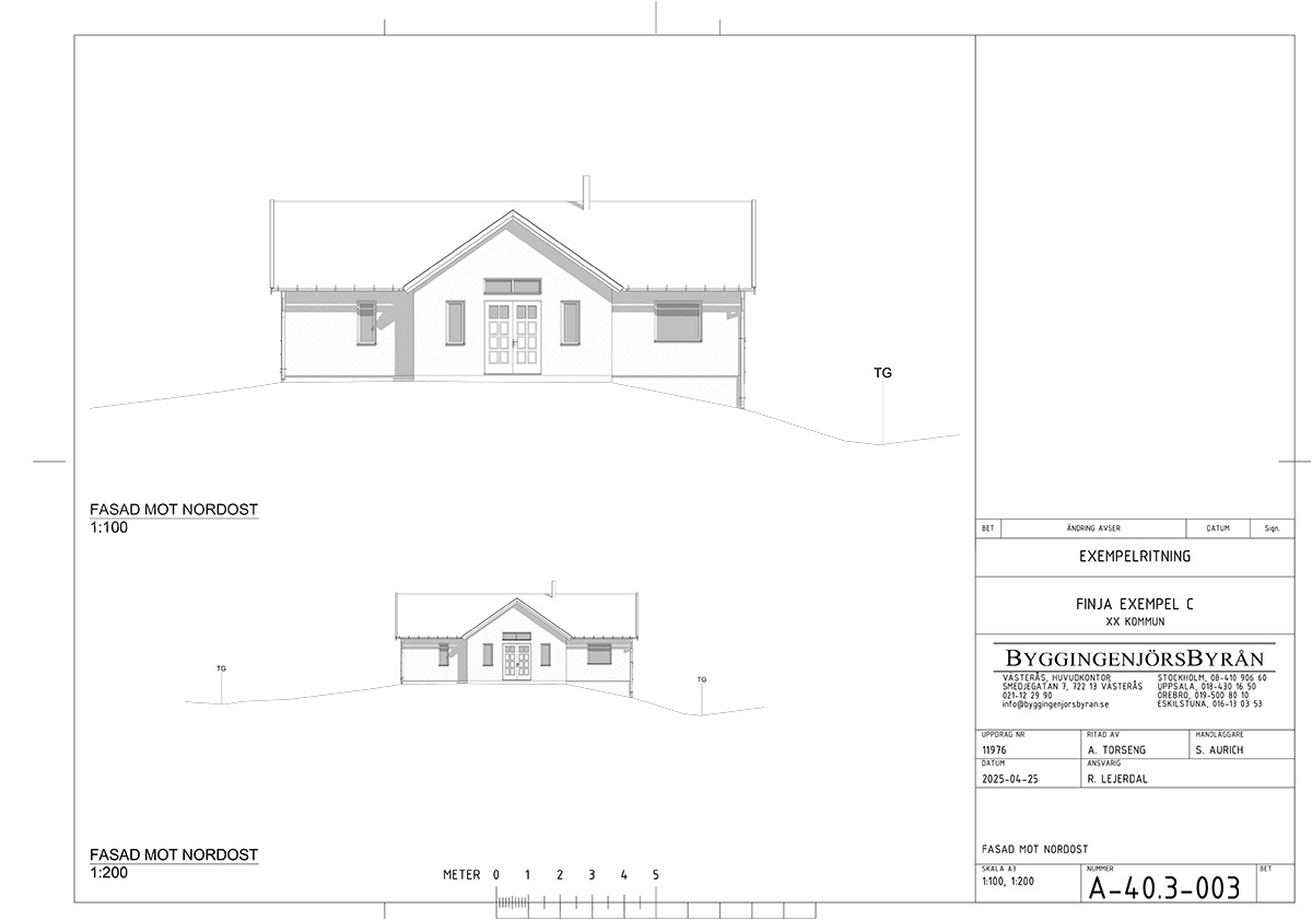 Til grunnmuren velger vi Finjas Exakt-elementer. Dette er stabile kantelementer som bryter kuldebroen, bærer vekten av veggen og har en ferdig utside av børstet betong. Her gir vi et generelt eksempel på hvordan du kan forberede grunnmuren. Konsulter alltid en konstruktør for å få korrekte anvisninger basert på grunnforholdene på tomten din.